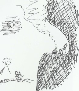 Nel suo schizzo (1) l’uomo ritorna in posizione elevata su una caverna, mentre mammuth si aggirano sorridenti ma minacciosi a valle. Spesso rifugi su alberi: quando l’architettura viene genialmente tentata nelle sue articolazioni conosciute – Yakisugi House, (2) è instabile – : presagisce il crollo; progetti e realizzazioni sembrano suggerire vie di scampo. Ma vie di scampo non ci sono. Già la canzone di Bruno Martino, Nel Duemila (1959), resa celebre dall’interpretazione del Quartetto Cetra, recitava nel ritornello ammiccante stronzio 90, qui ce n’è per tutti in quantità, e …finiremo tutti allo zoo.