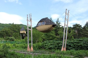 Fujimori propone un mix fra ancestrale e utopico, la cui tematica dominante è il rifugio.