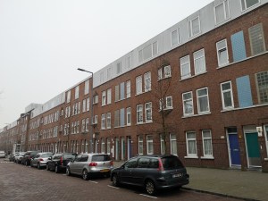 La prima meta, quindi, è l’insediamento di Spangen, Justus van Effen, una novità assoluta in termini tipologici. Sarebbe il primo, infatti, che propone “case unifamiliari sovrapposte” ma lavorando su un progetto d’insieme ereditato dalla tradizione nord-europea, il blocco edilizio con corte interna. Le case sono in linea ma l’accesso, esclusivo e non condiviso, avviene da uno spazio semipubblico (attualmente in realtà solo-privato, poiché il visitatore può soltanto accedere alla corte: le “strade pensili” non sono più raggiungibili). Parliamo di strade e non ballatoi perché si stratta di spazi abbastanza ampi per la socializzazione, non solo per il transito.