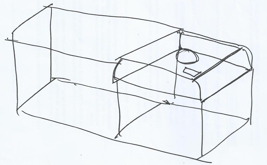 Non sappiamo infine chi ha fatto il progetto dell’edifico: un piano, superficie netta circa 8 m. x 23m. , con un interrato che interessa circa metà e una stanza accessoria sul retro. Un progetto molto ben studiato:una grande stanza con servizio e l’Atélier, con l’apertura principale verso il giardino e una copertura piana, con raccordi a padiglione alle pareti verticali: scelte che testimoniano di un intervento diretto del pittore e una qualche maestria dell’ignoto progettista. Dopo molte esitazioni, che riguardano la scelta di un terreno adatto, finalmente nell’Agosto del 1860 i lavori sono avviati, quasi conclusi nel Settembre successivo. I viaggi a Parigi sono tuttavia continui, e arredi , sistemazioni interne e piccoli lavori sono documentati fino all’Agosto del 1867. Mentre si assesta infatti nel ruolo di capofila di una scuola realista parigina, in varie lettere lo studio di Ornans è al centro delle sue preoccupazioni. Cita i colori delle pareti, il soffitto azzurro come il cielo, persino un mobile da mettere tra due finestre del salone dello studio. In una lettera a un collaboratore, del 6 aprile 1866, diciassette anni dopo il suo trasferimento a Parigi, Courbet parla con assoluta passione e conoscenza della sistemazione e dell’ampliamento del suo frutteto.